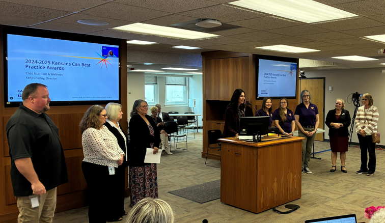Kelly Chanay, director of the Child Nutrition and Wellness (CNW) team at the Kansas State Department of Education, presented the 2024-25 Kansans Can Best Practices awards to five CNW program sponsors during the Kansas State Board of Education’s meeting on Oct. 14, in Topeka.