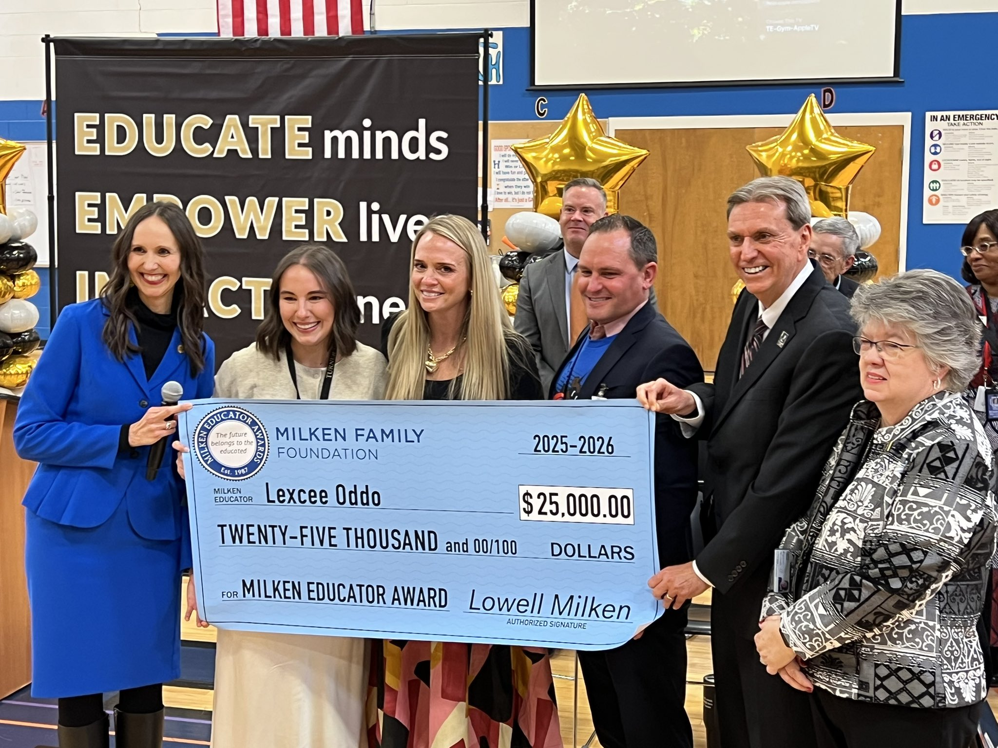 In selecting Oddo for this prestigious award, the Milken Family Foundation cited her ability to create “a learning environment where multilingual learners are empowered to grow in reading, writing, listening, and speaking. She creates an environment where high expectations, individualized support and a deep sense of purpose drive student success.”