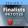 The other KTOY Region 1 semifinalists were Sara Greene, a fourth-grade teacher at West Elementary School, Wamego USD 320; Megan Todd, a fifth-grade teacher at Rock Creek Middle School, Rock Creek USD 323; Elizabeth Aldridge, an English language arts teacher at Wamego High School, Wamego USD 320; and Christopher Rome, an English language arts teacher at Marion High School, Marion-Florence USD 408.