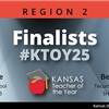 Other Region 2 KTOY semifinalists were Erin Scott, a first-grade teacher at Baldwin Elementary Center, Baldwin USD 348; Denise Thorpe, a third-grade teacher at Horton Elementary School, South Brown County USD 430; Diane Kimsey, a teaching as a profession pathway educator at Topeka High School, Topeka USD 501; and Susan Livingston, a social studies teacher at Emporia High School, Emporia USD 253.